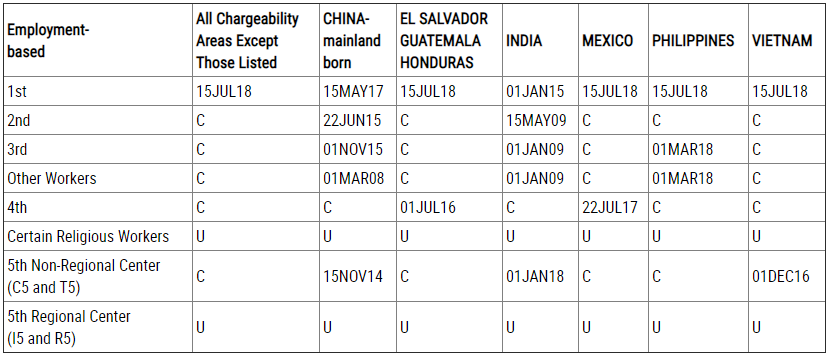 EB-1:表A排期EB-1前进至2017年5月15日,比上月排期前进了3个多月,表B本月无变化。